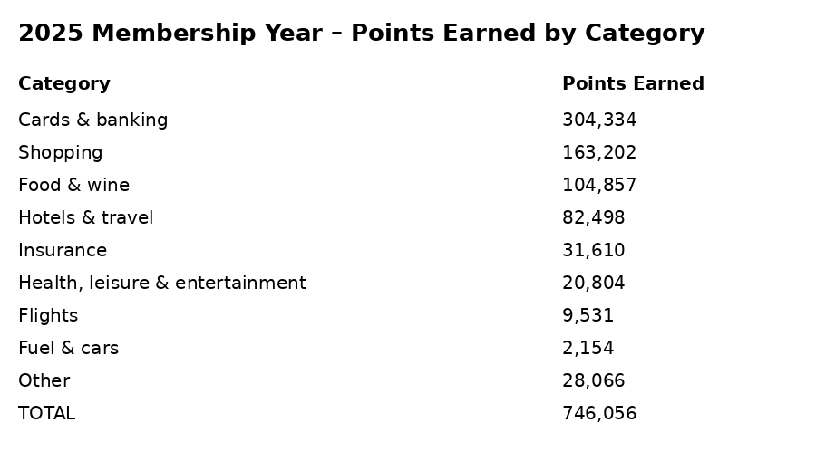 There was no optimisation here, no deliberate attempt to “earn more.” The increase reflects a year where activity levels were higher — and the points followed.